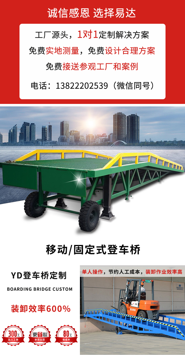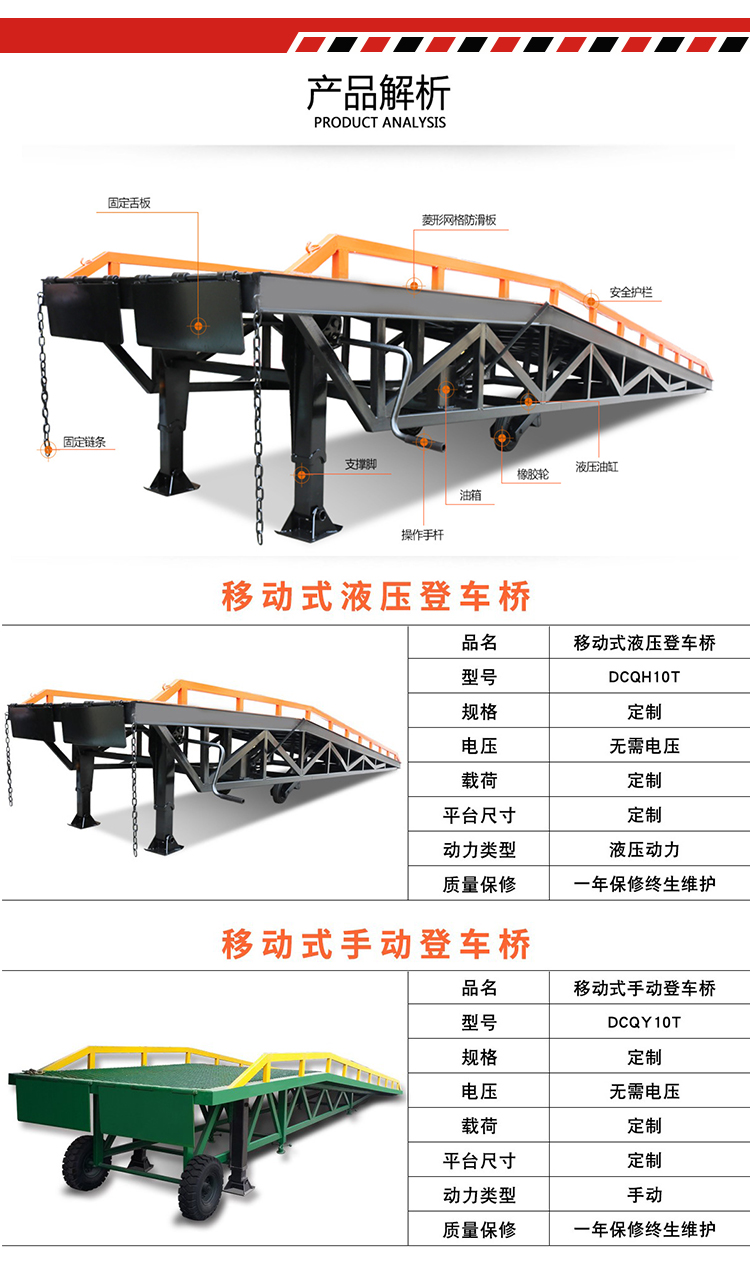 登車橋只要用于貨物裝車或卸貨的時候使用,款式多樣,可滿足貨物不同方式的上下貨,提高作業(yè)效率,節(jié)省人力物力。